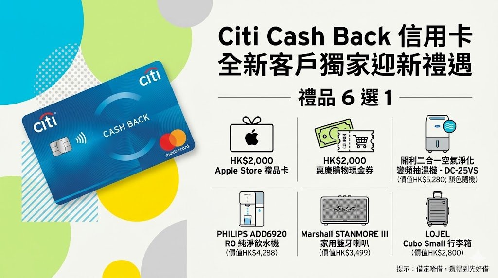 Citi Cash Back 信用卡一直都係香港市場上其中一張最受歡迎嘅現金回贈卡,主打「碌幾多、回幾多」,將現金回贈自動存入你嘅戶口,幫你輕鬆慳錢。呢張卡特別啱晒啲唔想煩、又想喺日常消費、尤其係本地食飯、住酒店同埋海外簽賬賺盡回贈嘅朋友仔。如果你係想搵一張無上限回贈、又夠晒實用嘅信用卡,咁 Citi Cash Back 絕對值得你留意吓啦!