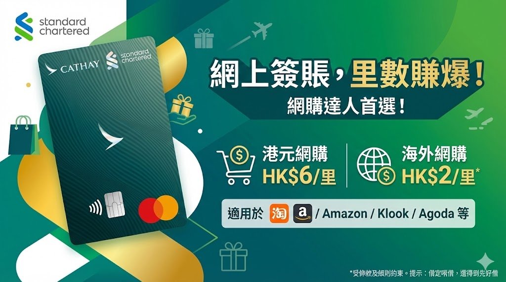 想將日常消費輕鬆變成周圍飛去旅行的機會?咁就要留意渣打銀行同國泰航空聯手推出嘅「渣打國泰Mastercard」啦!呢張卡專為Asia Miles(亞洲萬里通會員)度身訂造,佢都提供咗超強嘅里數回贈率,尤其喺國泰同香港快運簽賬方面,更係快人一步,甚至可以幫你累積Asia Miles積分!如果你想將每一筆簽賬都轉化為下一個旅程嘅動力,咁呢張卡就絕對值得你考慮啦!